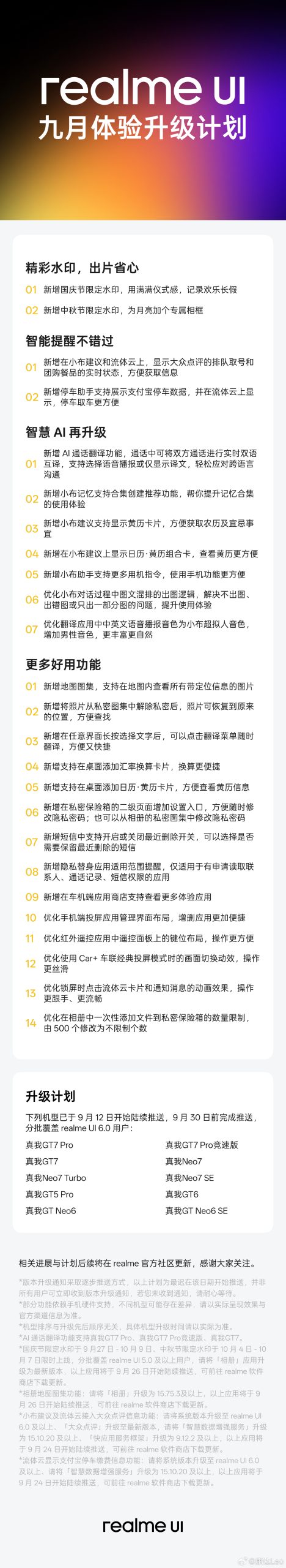 Realme has started rolling out the Realme UI 6.0 September upgrade plan in the Chinese market. This update brings various customized features for holiday use, while it also includes various optimizations.