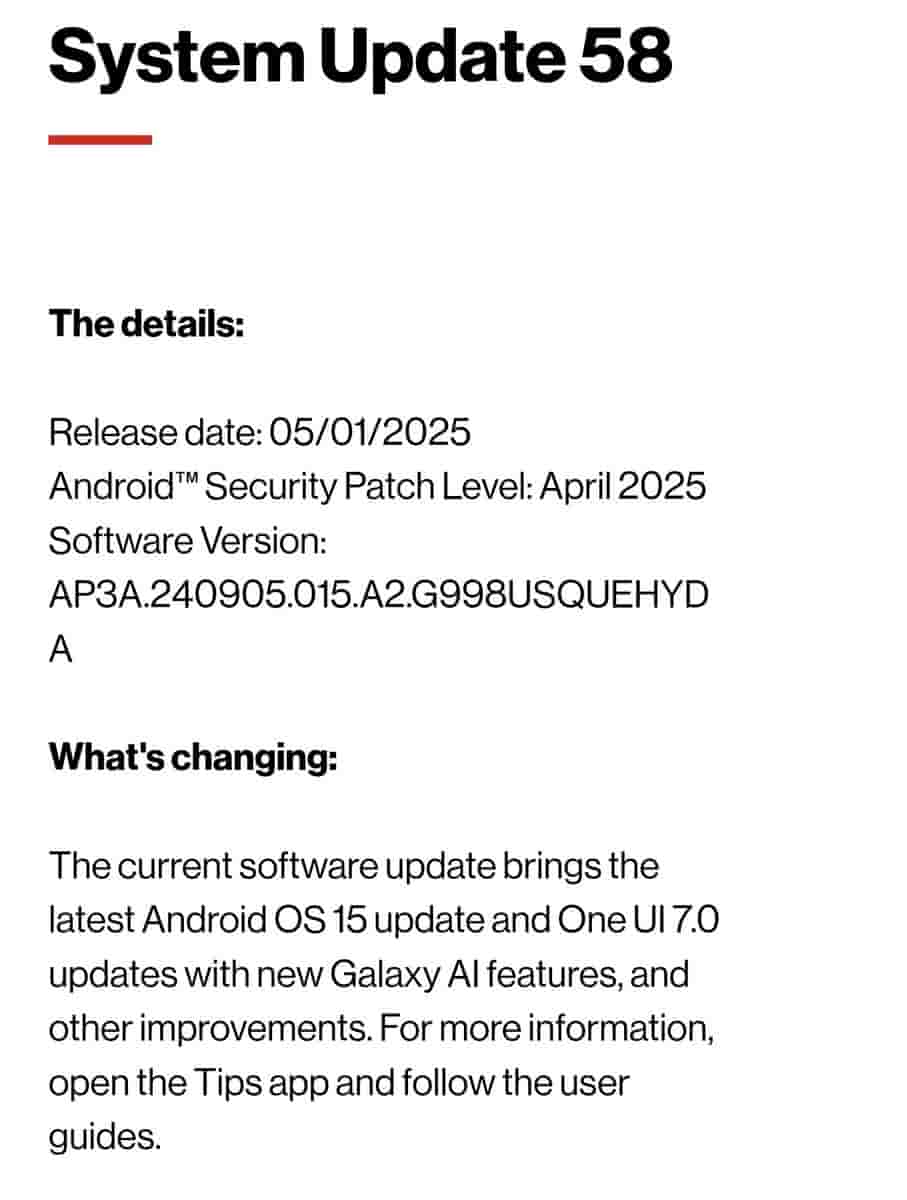 Galaxy S21 5G (Verizon)- One UI 7 update