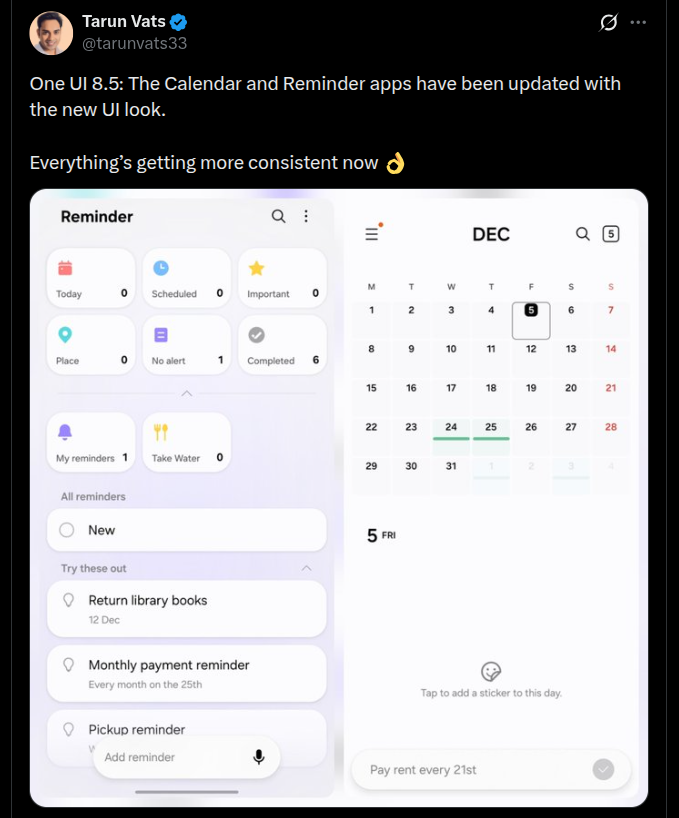 One UI 8.5 – Audio Brief for Now Brief and New UI Look for Calendar, Reminder, and Clock Apps