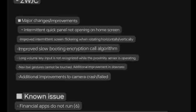 As per the changelog, this update fixes issues associated with quick panel, screen rotation, boot encryption, volume key input, and navigation bar gestures. However, users can also face issues with 6 financial apps. Users who are testing beta can download it by navigating to Settings >> Software Update >> Download and Install.
