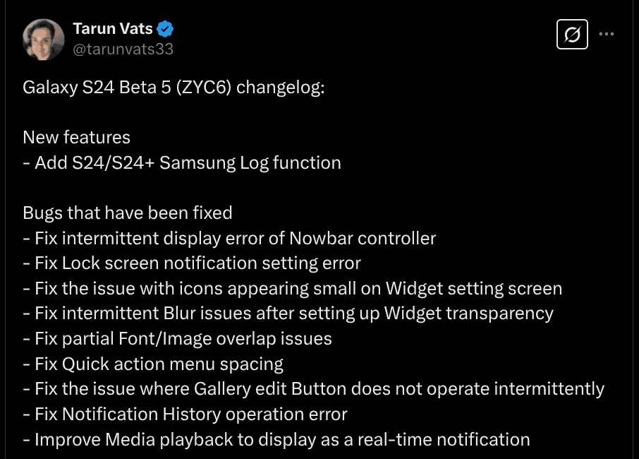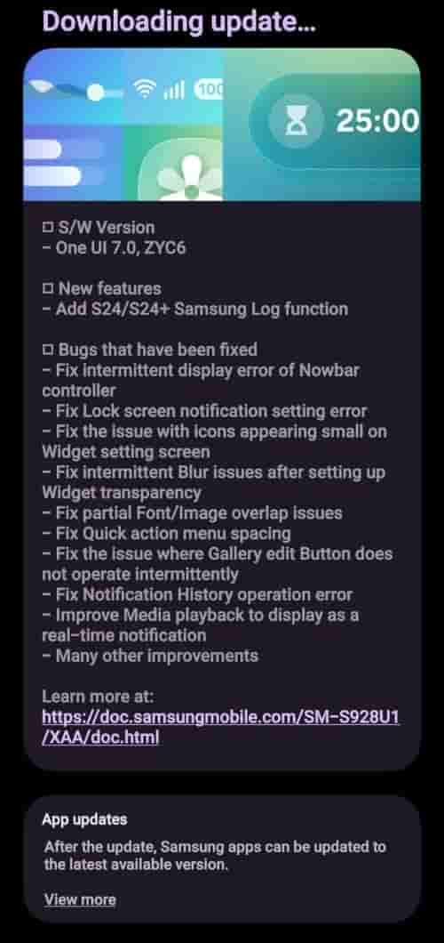This One UI 7 beta 5 update that is now rolling out for the Galaxy S24 series users has the firmware version – ‘ZYC6’, and along with multiple bug fixes and improvements, an added Samsung Log function has been made available for the vanilla Galaxy S24 and Galaxy S24+ smartphone models as well.
