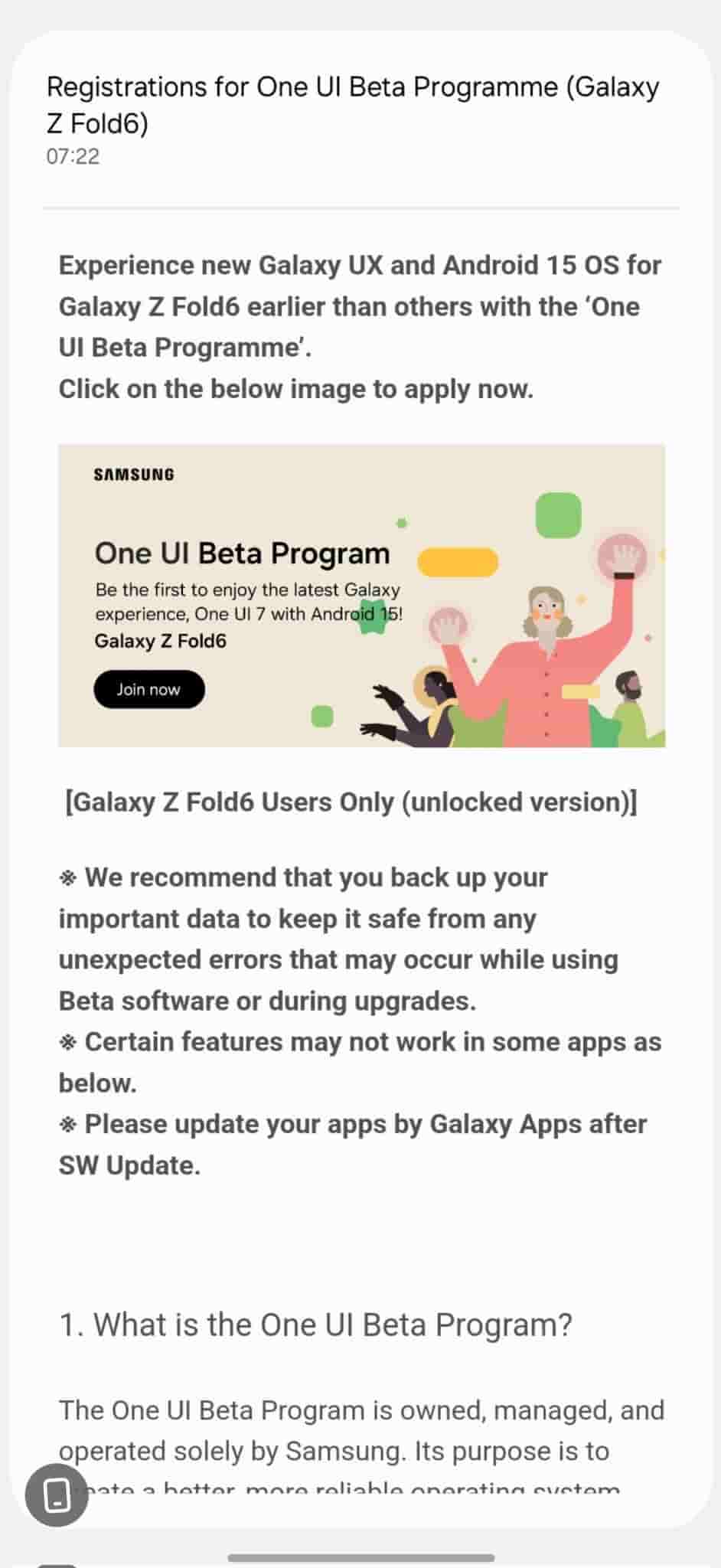 Galaxy Z Fold 6 One UI 7 Beta Program in India