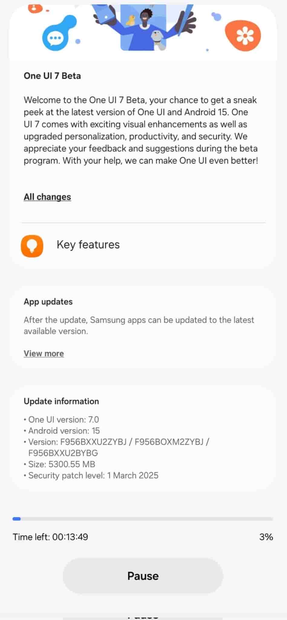Also, the One UI 7 beta update for the Galaxy Z Flip 6 has a size of 4819.18 MB, and it integrates the March 2025 Android security patch to the device for enhancing its overall system security.