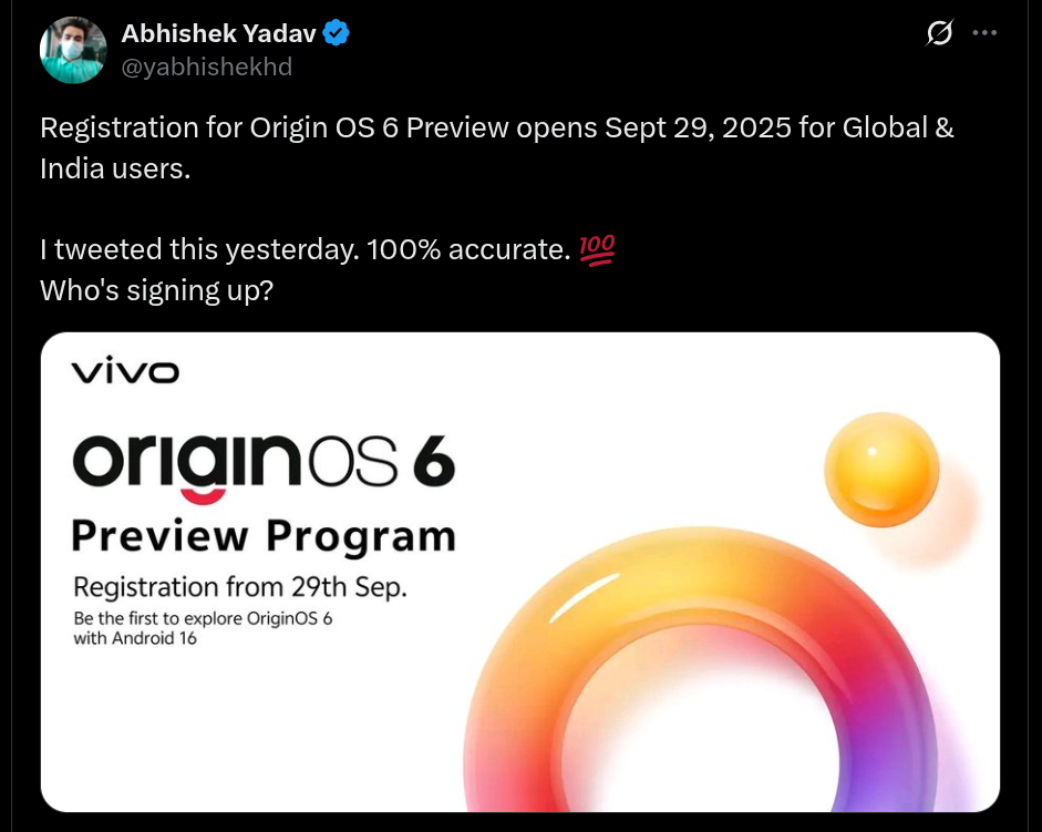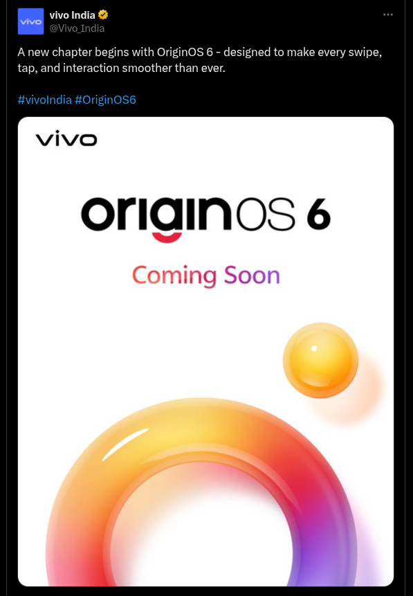 Via their official X handles, Vivo and its subsidiary – iQOO have now announced that the two are planning to start a new chapter/journey with the upcoming OriginOS 6 custom skin, and it is teased to offer smoother performance ~ ‘for every swipe, tap, and interaction’. To add, this announcement comes just a few hours after the ‘FuntouchOS India’ X page was renamed to ‘OriginOS’. Also, as revealed earlier today, the registration for the OriginOS 6 Preview will go live next week itself on the 29th of September 2025 for both the Indian and global users of Vivo/iQOO devices (received via @yabhishekhd).