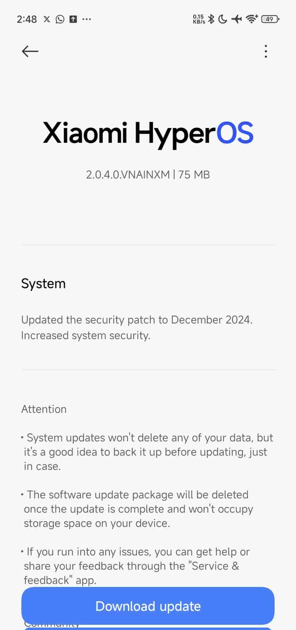 While there’s no news regarding the Xiaomi 14’s December 2024 Security Patch, it appears the Xiaomi 14 Ultra is receiving another update that includes the December 2024 Security Patch. This new update focuses on system stability and improves the device’s overall performance. The update is relatively small at 75MB and carries the build number 2.0.4.0.VNAINXM. It’s worth noting that this update has been spotted on an Indian unit.