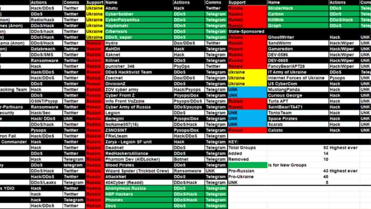 A new list has appeared of pro Ukraine and pro Russian hackers, Reports