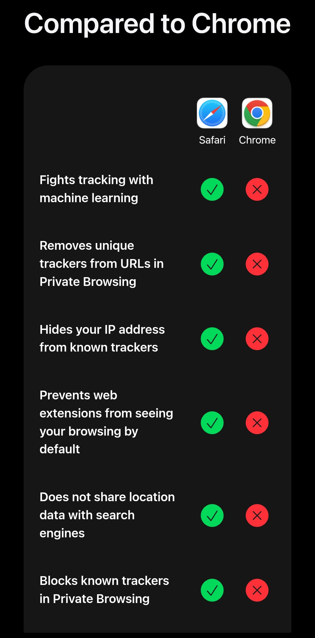 Apple has also compared Safari with Chrome, highlighting the capabilities of its own browser. Check out the image below.