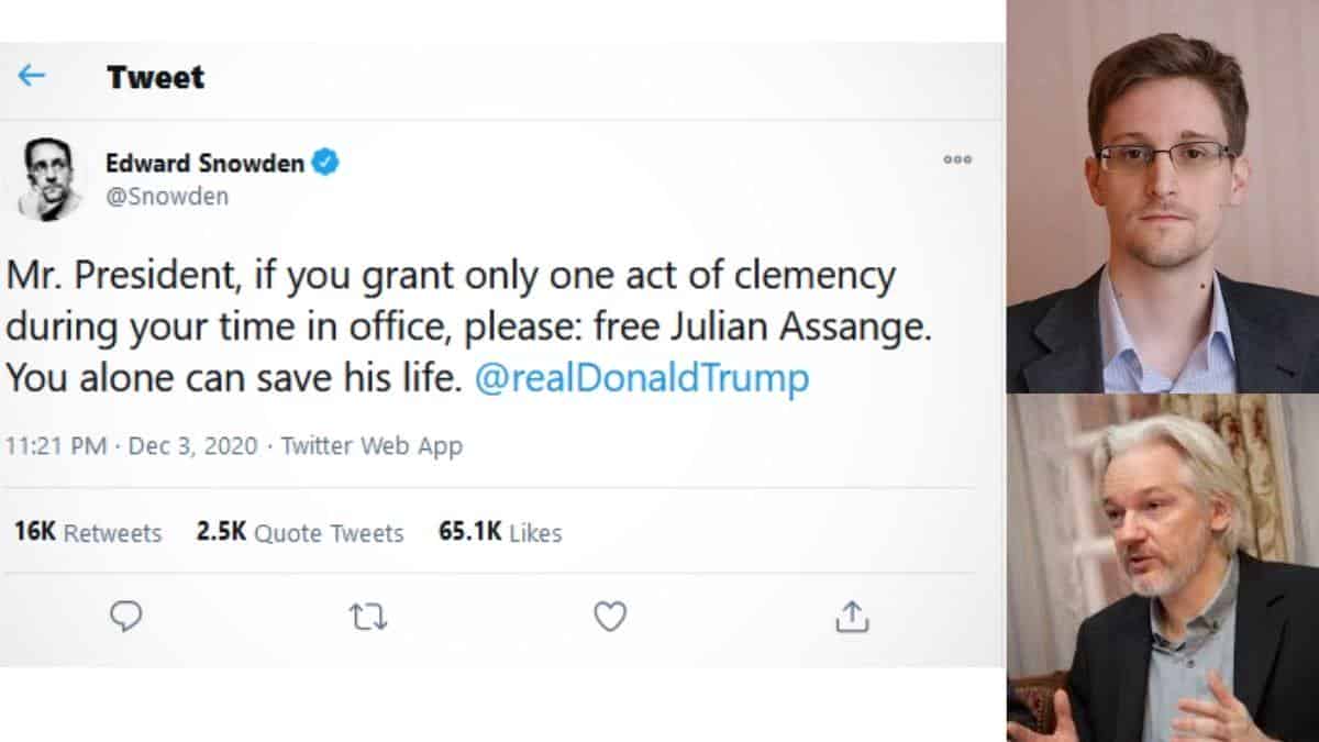 Snowden in his tweet asked the president to do one final act of clemency during his time in office by freeing Julian Assange. He also said that President Trump was the only person who could save his life.