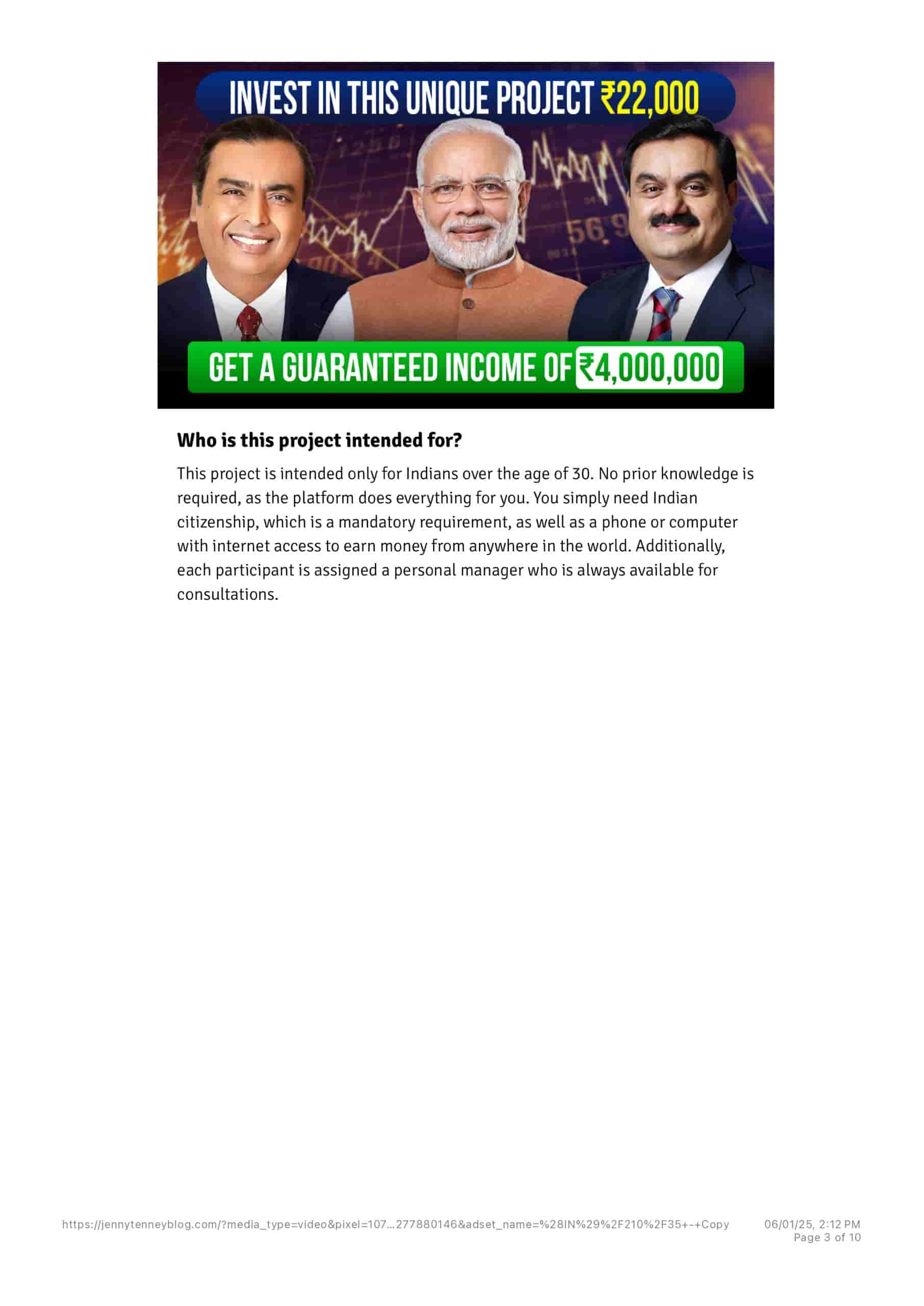 Below given are the screenshots of the scam website, featuring Mukesh Ambani, Narendra Modi, and even Gautam Adani, as well as a fake article put on a leading Indian newspaper (not really published), along with people who have supposedly earned through the project, in attempts to bring authenticity to it. But beware Indians – THIS IS A SCAM!