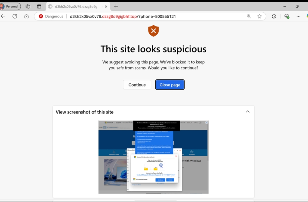 When a scareware blocker suspects a page is a scam, Edge will put users back in control by exiting full-screen mode, stopping aggressive audio playback, warning the user, and showing a thumbnail of the page they were just viewing.