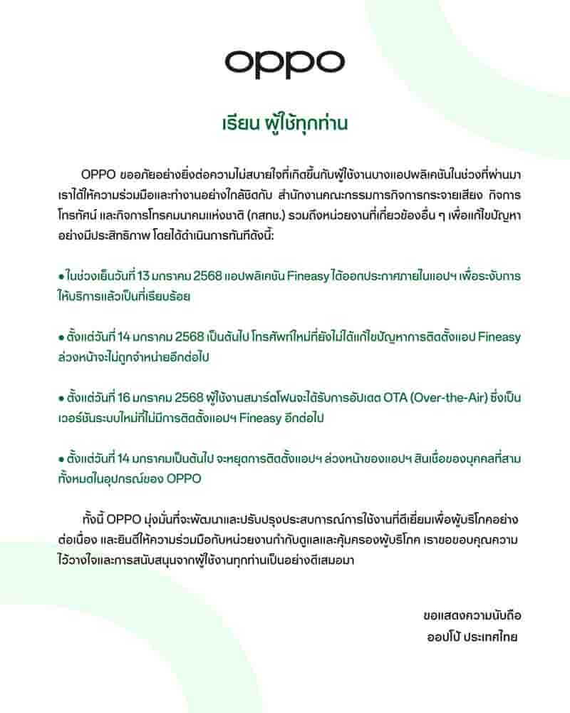 Apart from these agencies, the Cyber Crime Investigation Bureau also launched an investigation into this matter and found that the loan apps were part of ColorOS which is developed by phone manufacturers. In the latest Android 15 version the apps Fineasy and Happiness Loan were found pre-installed without user consent. Authorities are now determining if this violates Section 13 of the Computer Crime Act, which prohibits distributing software specifically designed as a tool for committing crimes. Violators face up to one year in prison, a fine of up to 20,000 baht, or both.
