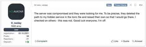 0 neday wrote in another message, “The server had been hacked, and they were on the lookout for me. They removed the route of my secret service from the torrc file and replaced it with their own, causing me to go there. I double-checked with others, and this was not the case. Good luck to everyone; I’m leaving now.”