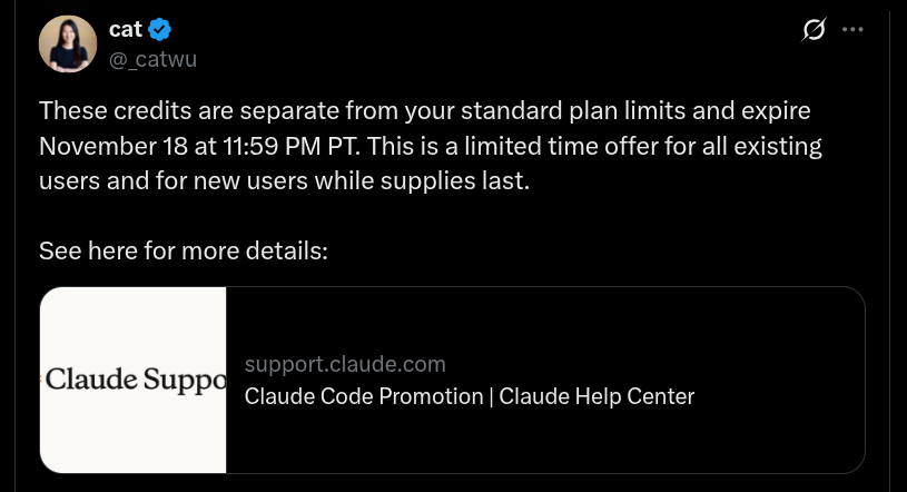 As mentioned, for both Pro and Max users, Anthropic’s Claude Code web version is offering free usage credits and as per what has been revealed, the purpose of this is to allow users to flexibly experiment with the Claude Code (web version), and thereby gain more user feedback to improve the new product. This is a limited time offer and will be accessible for two weeks – until the 18th of November 2025, at 11:59 PM PT.
