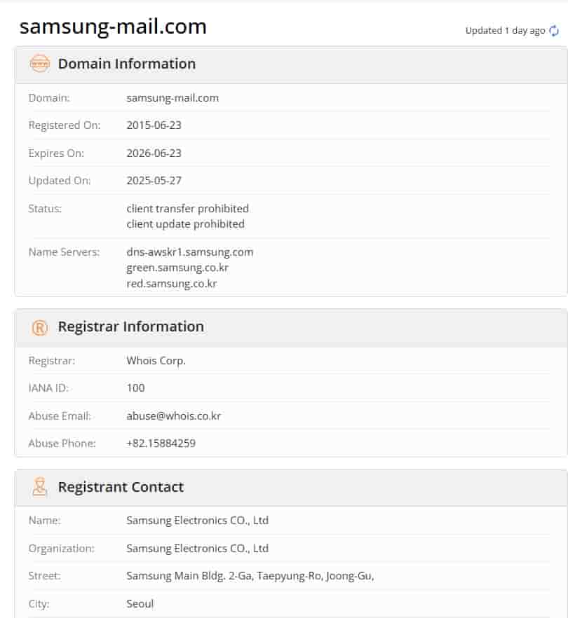 Update: On Samsung community page, it is revealed that that is just a notice to mention that Samsung account will be deleted if not used for 24 months. This email is safe and will be shared to everyone. Also we checked the whosinfo for the domain Samsung-mail.com, and it appears that the domain belongs to Samsung itself.
