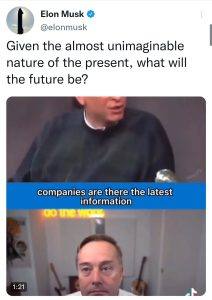 Elon Musk tweeted, “Given the almost unimaginable nature of the present, what will the future be?”
