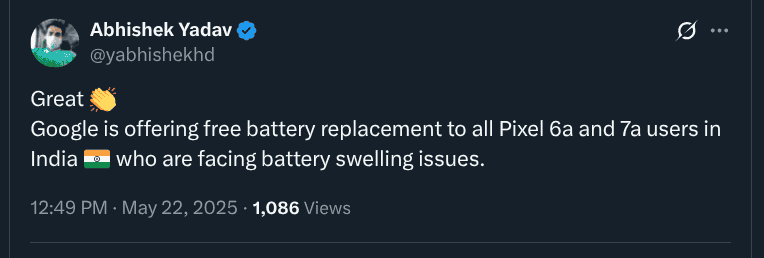 Indian users of the Pixel 6a and Pixel 7a smartphone devices who are affected by battery swelling issues, here’s some good news. Google is currently offering battery replacement for such affected devices absolutely free of cost in the Indian market.