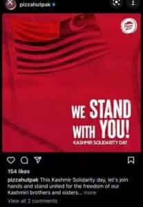 Similarly, an Instagram post from the verified account of ‘Pizzahutpak’ had said, ‘We stand with you. Kashmir Solidarity Day. Pizza Hut issued a statement after facing backlash over the Instagram post by its official handle in Pakistan.