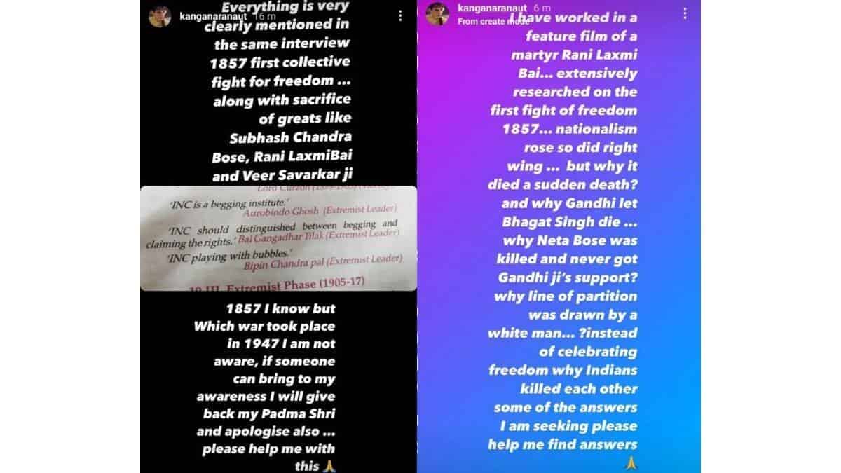 Kangana Ranaut will return her Padma Shri if she’s proven wrong on the freedom comment and asks, “Which war did take place in 1947?”