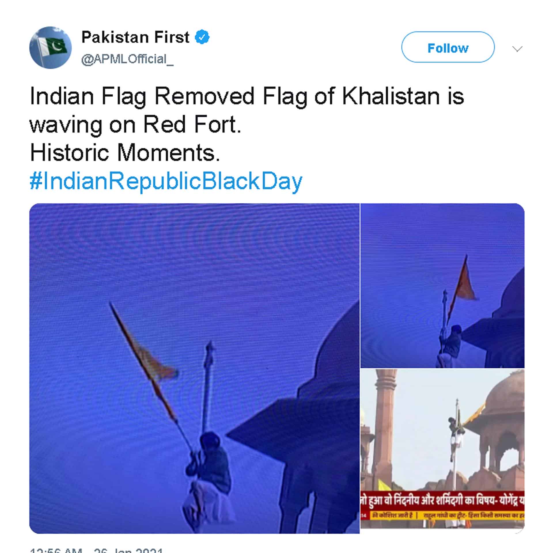 Pakistan Twitter Handles published the images of Red Fort Incident linking it to the Khalistani Movement