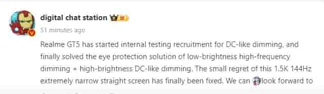 Realme officially started the Internal Testing Recruitment for DC-like Dimming in the latest Realme GT 5