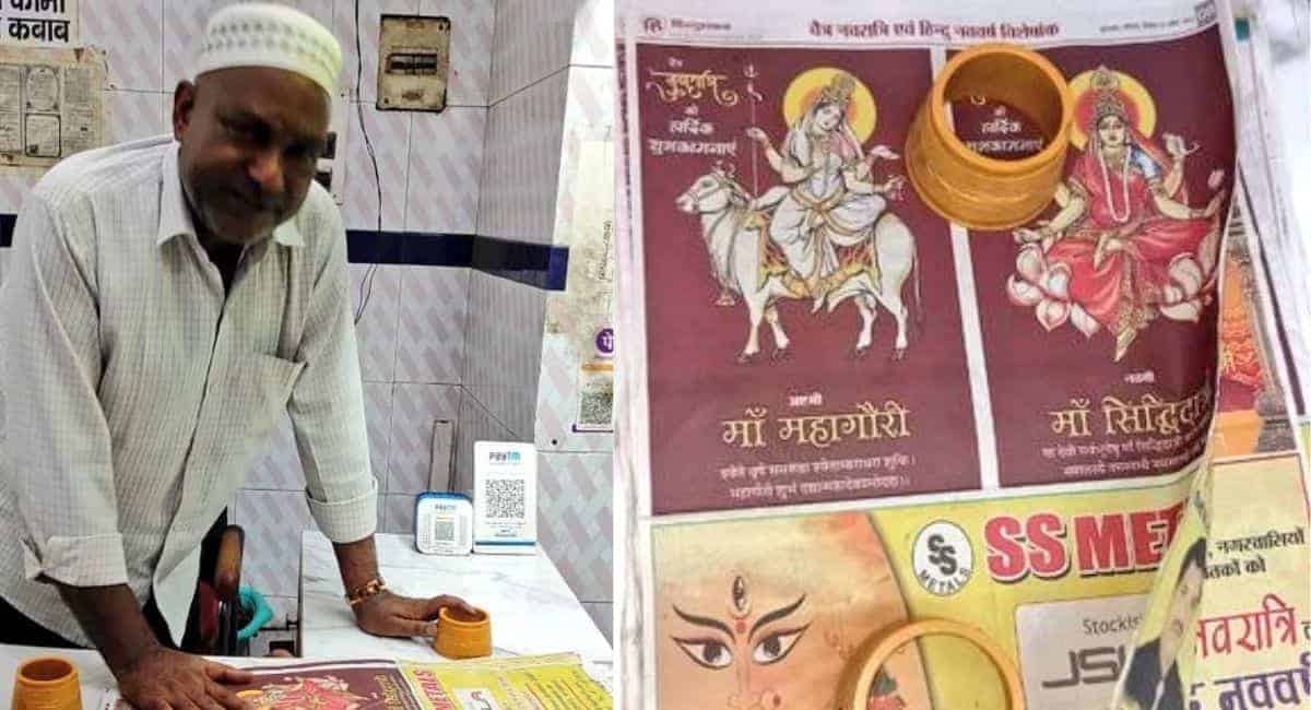 image courtesy:ivishalkaushik/twitterOn Tuesday, a man was arrested in Uttar Pradesh’s Sambhal district for selling chicken on a piece of paper that had images of Hindu deities.