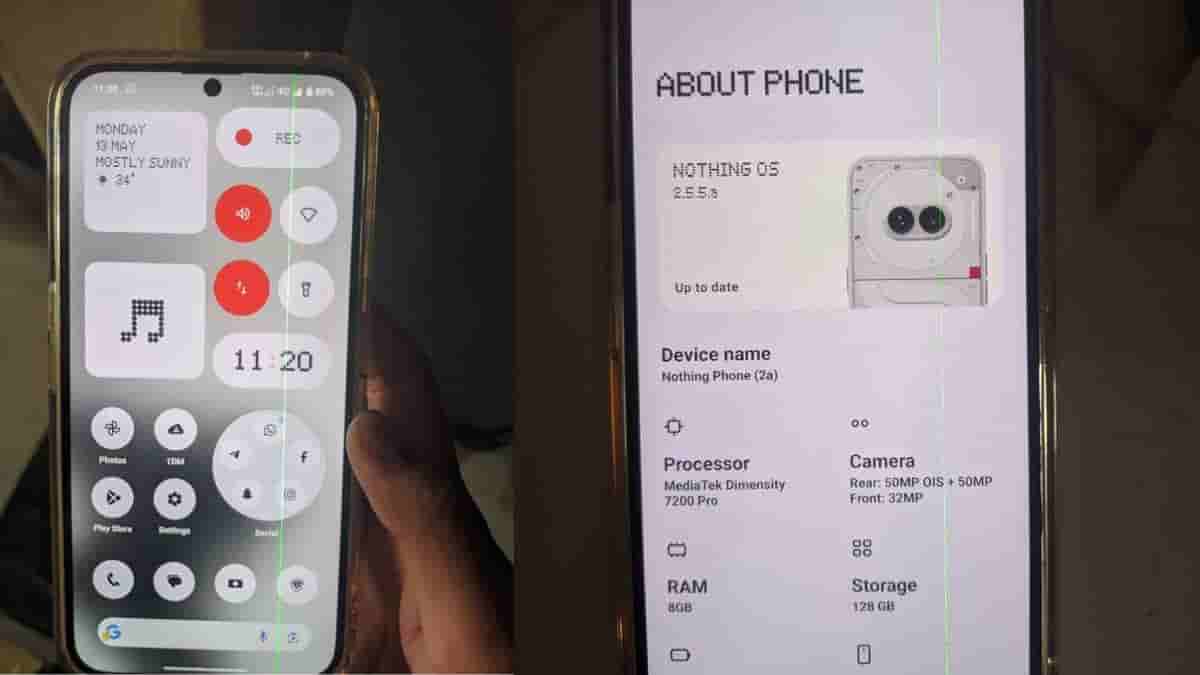 A user named Hrishabh Payal has shared an image on X that shows the display of a phone that the user says is Nothing Phone(2a). There is a thin green line issue on the display that is easily observable. The phone’s About Phone section confirms the smartphone model and also shows that it is up to date with the latest Nothing 2.5.5a update installed. In case this is an issue accompanied by the update more users should have reported about it after the rollout of an update though not many such issues have yet come out, if happened. We found the post by one of the Nothing Phone(2a) users on the Nothing Community forum. He wrote that he found a green line issue on the lock screen but it did not appear to him after the smartphone was unlocked. Another user who came across the same issue wrote that when he disabled the fingerprint scanner, he did not see such lines on the lock screen. The company has not come forth to say anything about it though we think these reports are far from the threshold to be addressed on a mass level for now.