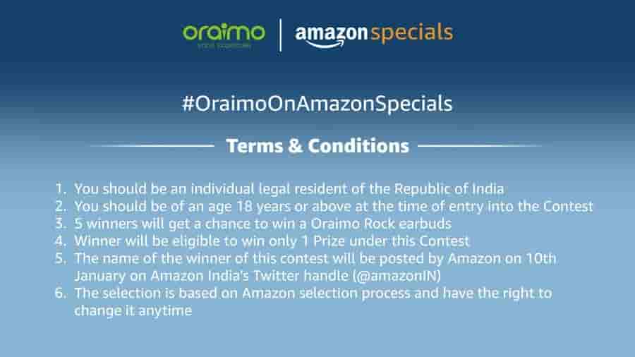 “Capture the earbuds’ correct price and share the screenshot in the comments below,” insisted Amazon India and asked the users to attach the hashtag #OraimoOnAmazonSpecials and #OraimoRockEarbuds to win.