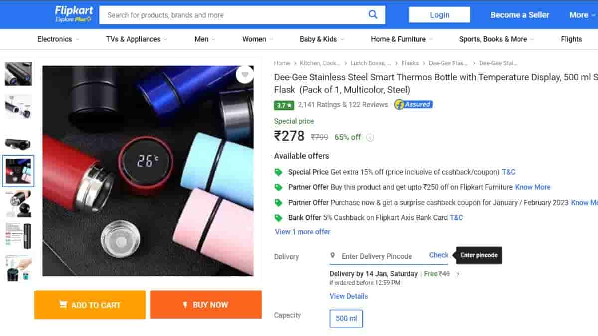 The Dee-Gee Stainless Steel Smart Thermos Bottle is available at stealing 65% off at Rs. 278 only. You get a 7 days return policy and also offer cash on delivery.