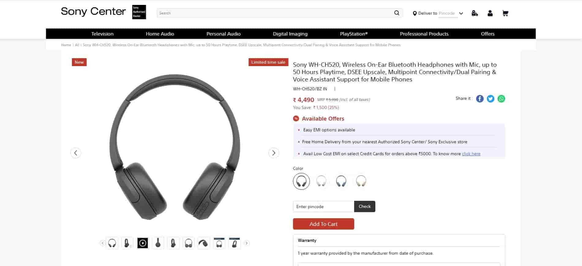 Sony WH-CH520, Wireless On-Ear Bluetooth Headphones are available to buy from Sony Center at Rs 4,490, which is 25% off the retail price of Rs 5,990. With this deal, you will save Rs 1,500.