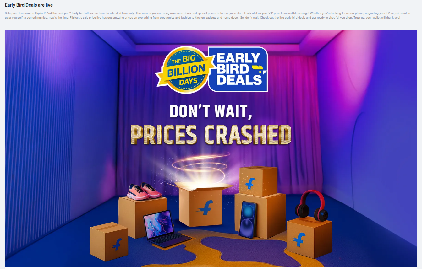 Flipkart Big Billion Days – Early Bird Deals Now Live