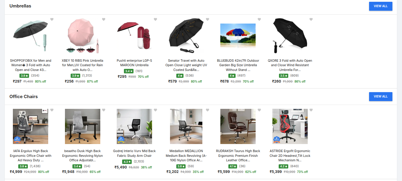 As mentioned, the early bird deals that have now been made live in the Indian market are mostly on umbrellas, office chairs, branded footwear, laptops, ACs, premium watches, toys and games, and sofas, and these are currently listed at huge discounted prices. For umbrellas, up to 92% discounts are available. Up to 86% discounts are available on sofas. Branded footwear from Puma, Adidas, Reebok, and more are available at up to 89% discounted prices. ASUS, Dell, HP, Acer, Lenovo, Samsung, and other laptops are also listed with over 50% offers. Air conditioners from Godrej, LG, TCL, Panasonic, Onida, and more are available at up to 54% offer prices. Premium watches from leading brands are also now put up for sale at up to 92% discounted prices. For kids, toys and games are also made available as part of the early bird deals, with discounts around 90%. Finally, office chairs for working professionals and more, can be bought at up to 81% discount prices.