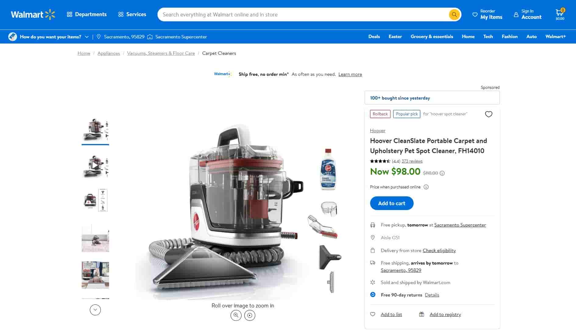 The Hoover CleanSlate portable cleaner is now available at Walmart at $98 from its actual list price of $118. This as you see is a $20 off on the product.