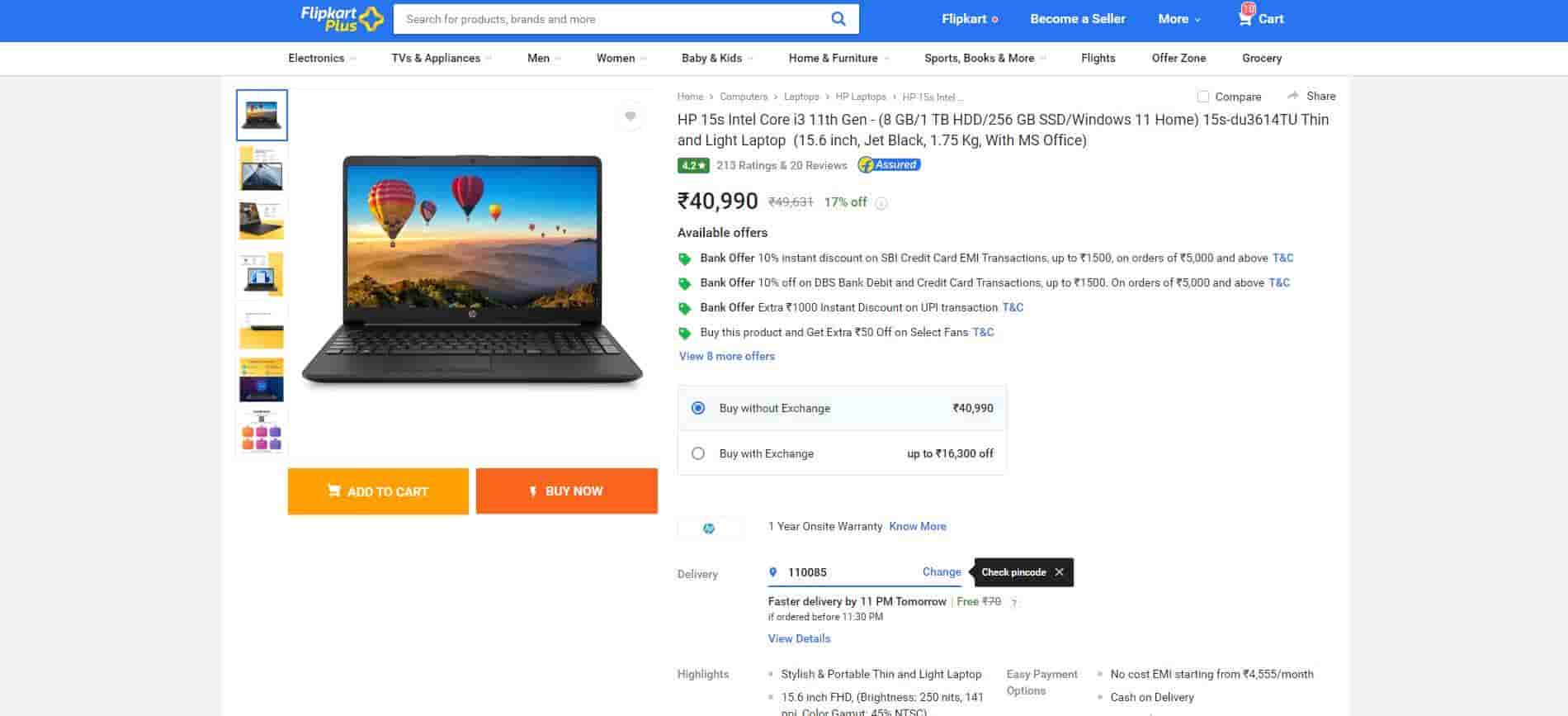 Looking for A Laptop? Get The HP 15s Intel Core i3 11th Gen Laptop from Flipkart at 17%