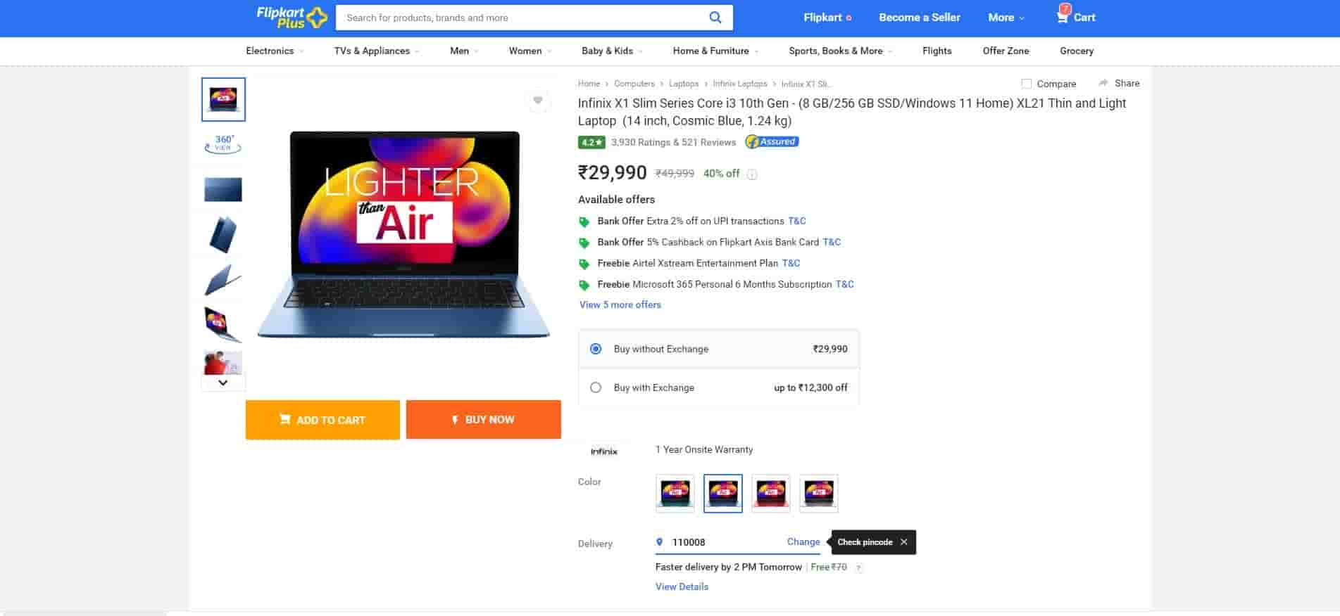 The Infinix X1 Slim Series Core i3 10th Gen is available at a price of ₹29,999 on Flipkart after a discount of 40%. The purchase saves you a sum of ₹20,009 on the product as it was previously priced at ₹49,999.