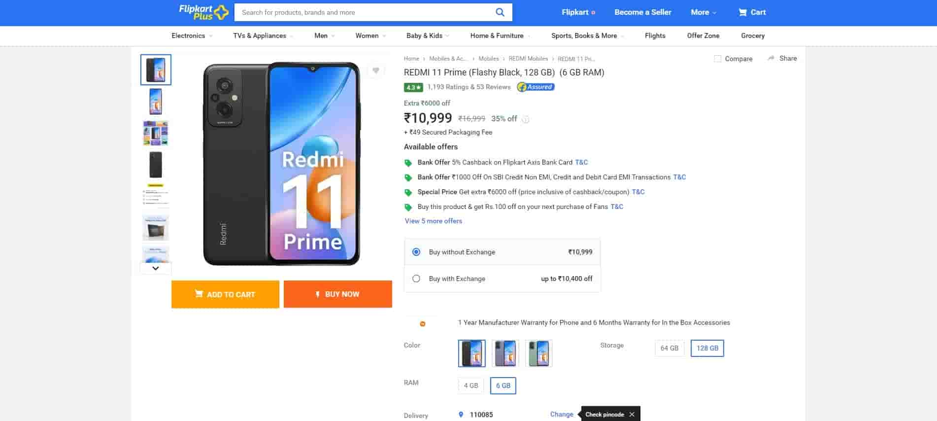 The Redmi 11 Prime smartphone is available to buy from Flipkart at 35% off of Rs 10,999 from the retail price of Rs 16,999. This smartphone has a 4.3-star rating on Flipkart.