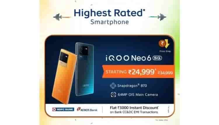 Aside from this the iQOO Neo 6 with a Snapdragon 870 and 64MP OIS main camera cost you Rs.34,999 but now its price has been dropped to Rs.24,999.