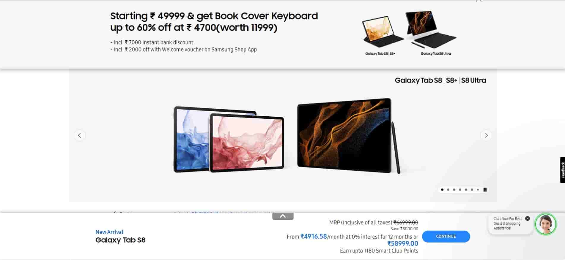 EMI for Galaxy Tab S8 starts from Rs 5,583 per month for 12 months, EMI for Galaxy Tab S8+ starts from Rs 7,166 per month for 12 months and the EMI for Galaxy Tab S8 Ultra starts from Rs 10,499 per month for 12 months.