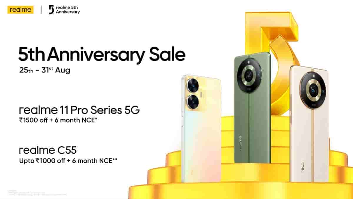 Get exciting offers on the Realme 11 Pro 5G Series and Realme C55 smartphones amidst the Realme 5th Anniversary Sale, last date of sale is 31st August 2023