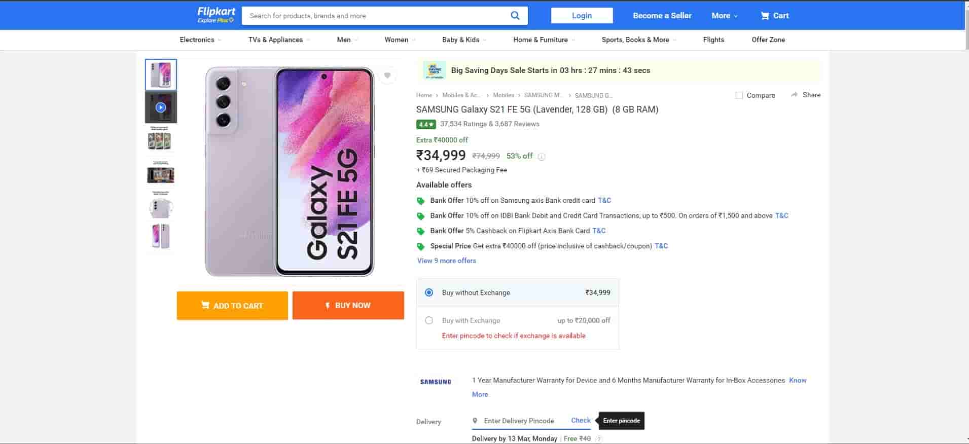Overall, the Samsung Galaxy S21 FE 5G is a feature-packed smartphone that provides an excellent user experience. With the discount offer of 53% on Flipkart, it has become even more affordable, making it an excellent choice for anyone looking for a high-end smartphone at a reasonable price. The smartphone is priced at Rs 74,999 and after the discount, you can get it for just rs 34,999. Another important thing to note here is that you can even take the benefit of the exchange offer. This means an extra saving if you have an old phone to replace and as per Flipkart you can get up to Rs 20,000. But we all know, what happens when the Wishmaster comes in to check our phones. So, if your old phone works well and is in good condition then only you can expect a good exchange value from Flipkart.
