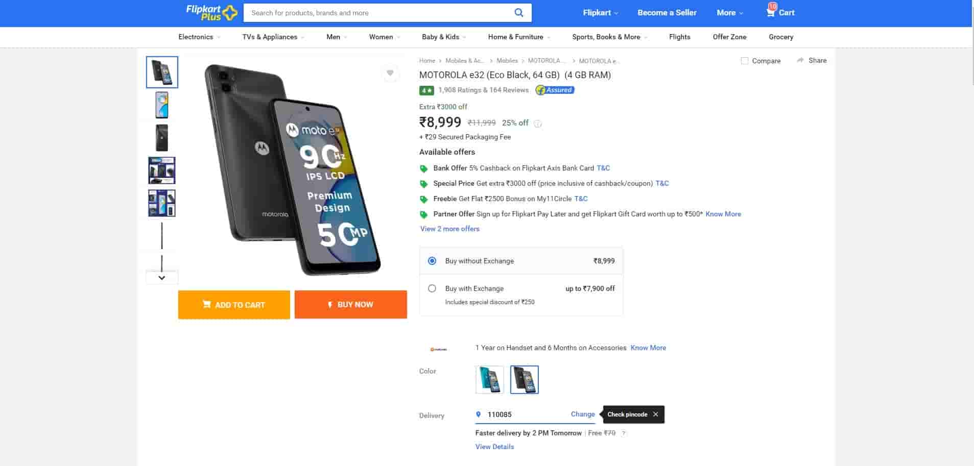Grab Motorola e32(4GB/ 64GB) Eco Black smartphone available on Flipkart at 25% of massive discount