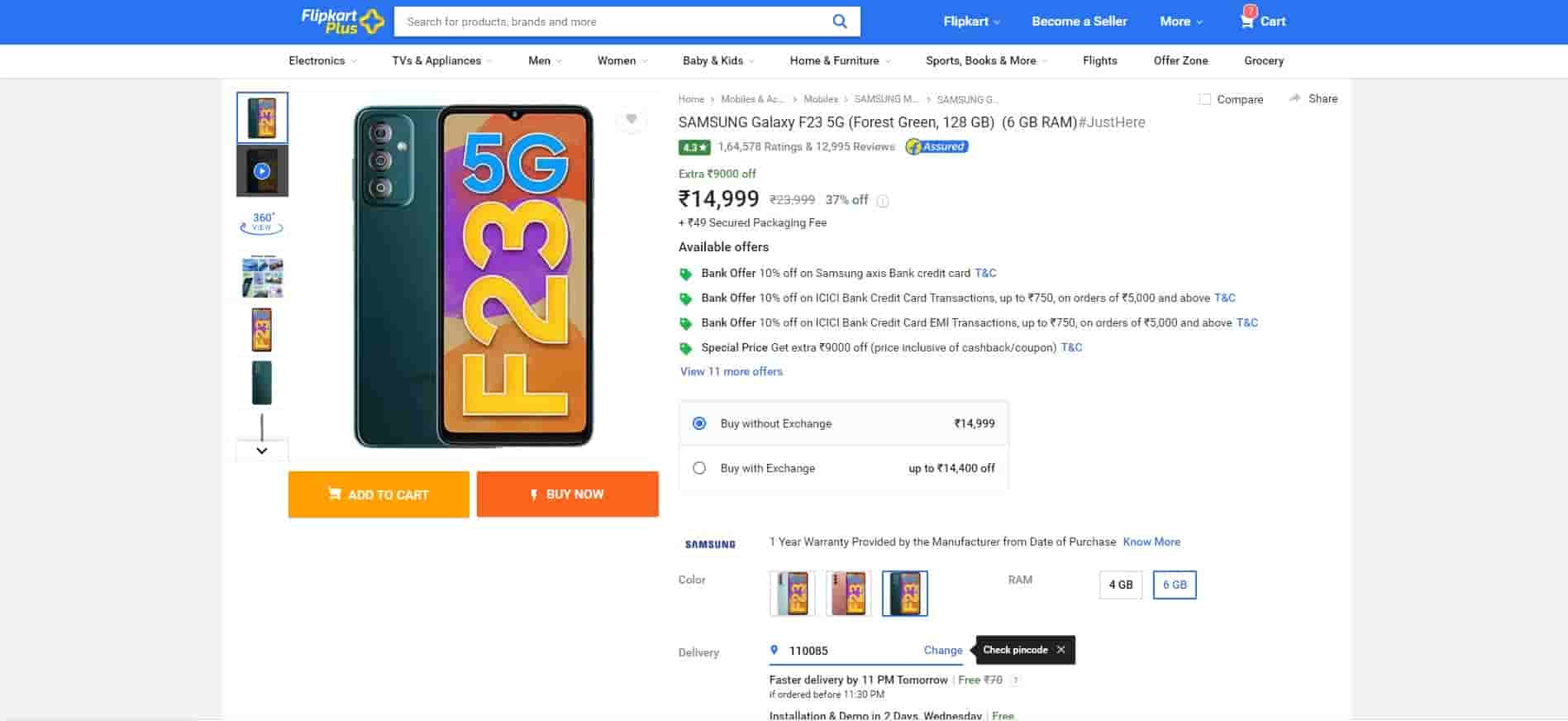 What if a 5G phone with 6GB RAM and 128 GB internal storage is available for just Rs 14,999? Won’t it be shocking, I think it would be and the Flipkart Dhamaka Sale has brought this exciting discount on Samsung Galaxy F23. This phone is available on Flipkart at a 37% discount which means you will have to pay only Rs 14,999 in place of Rs 23,999.