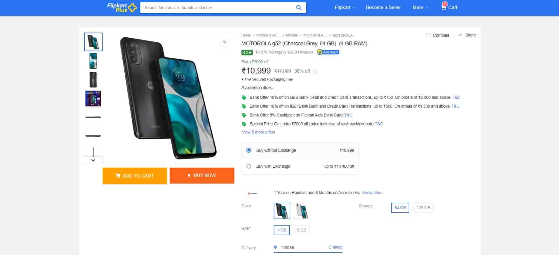 If it’s about best grab Motorola G52 at 38% discount and pay just Rs 10,999 in place of Rs 17,999