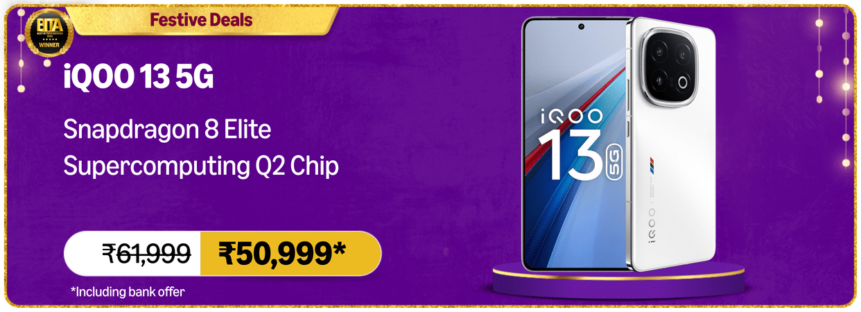 The brand’s flagship iQOO 13 5G smartphone of 2024 featuring a dual chip architecture (Snapdragon 8 Elite + Supercomputing Q2 chip) has been announced with an effective offer price starting at INR 50,999 with bank offers (from its previous actual price tag of INR 61,999).