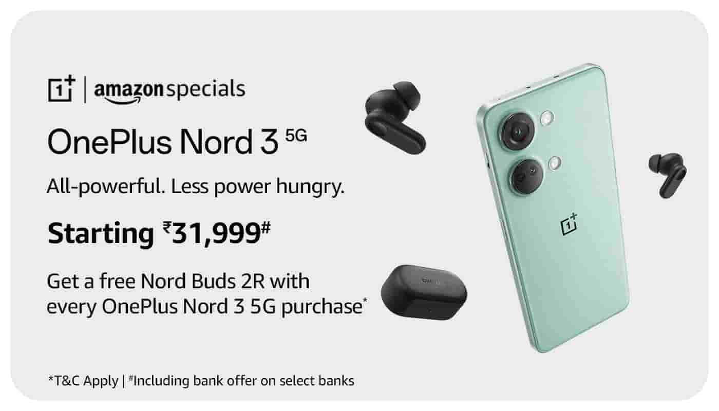 OnePlus Nord 3 5G live for sale on Amazon India for a price of Rs 33,999, buy it for ERs 31,999 with bank offers, Nord Buds 2R offered for free on purchasing the Nord 3 5G