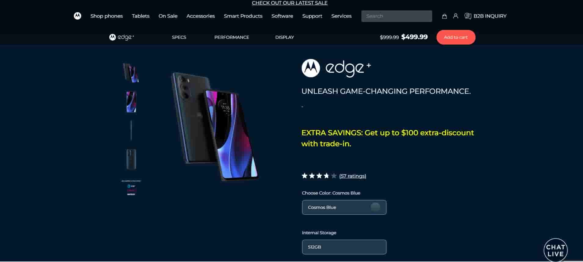 Save a huge sum of $500 on Motorola Edge Plus on its official website