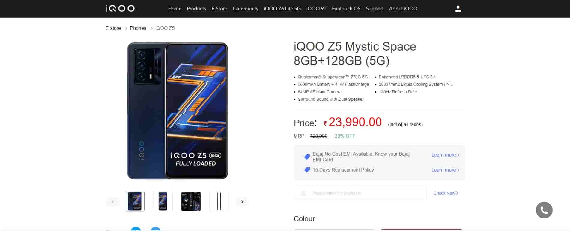 The price of the Z5 5G was set for Rs. 29,990. It isn’t a big deal now as the phone can be yours at just Rs. 23,990 from the iQOO website. You are getting a total of 20% off. You save Rs. 6,000!