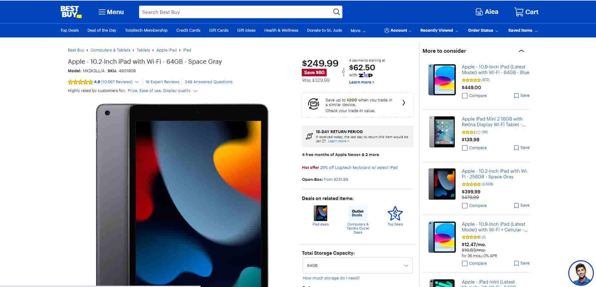 Apple 10.2-Inch iPad 64GB is available at a price of $249.99 on BestBuy. The purchase allows you to save a sum of $80 as the previous price of the product was $329.99.