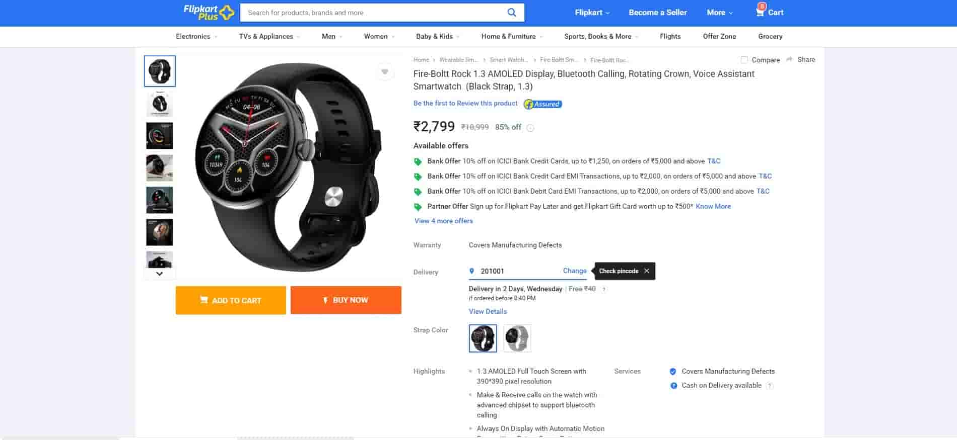 The Fire-Boltt Rock Bluetooth Calling Smartwatch can be brought from Flipkart at an unbelievable 85% of Rs 2,799 from the retail price of Rs 18,999. This stylish smartwatch can be a valuable addition to your day-to-day life.