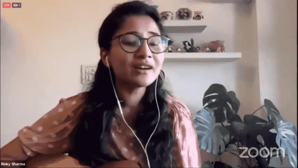 The event started with an alluring performance by a city-based popular singer-songwriter, Rinky Sharma from her own album. Followed by which, an enlightening talk on Gender-based violence was delivered by Sudarshana Kundu. She addressed gender-based violence, highlighting the influence of existing social structures on Gender-based Violence. She also educated the audience on different types of violence that can be seen around us in different spaces.