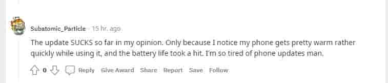 A Reddit user made a comment that after the update the phone started to warm up pretty quickly after a few minutes of usage. He further said that after this update the battery life of this phone has also taken a hit.